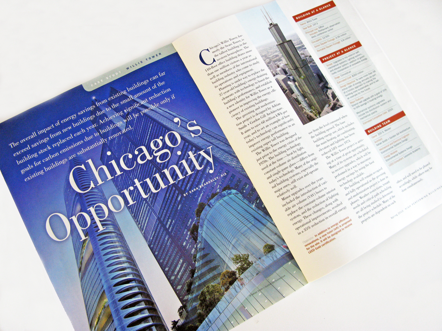 The greening and modernization project is designed by Adrian Smith + Gordon Gill Architecture. It aims to save 68 million kWh per year, and to set an example of how today's technology can significantly improve energy performance in an existing super tall building.
